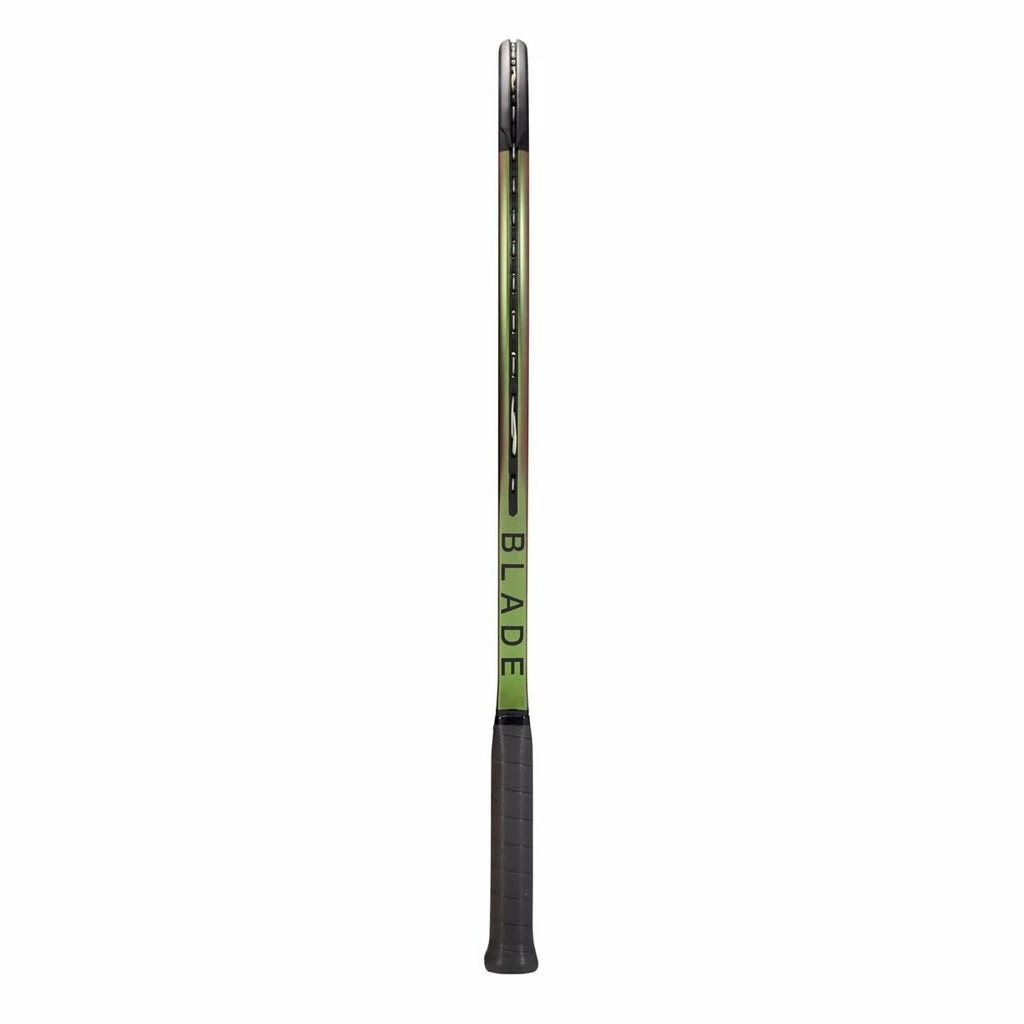 Wilson Blade 98 18X20 v8 tennis racquet commands attention with eye-catching design alongside elevated performance. While the exterior of the frame morphs between shades of green and copper, the interior of the frame features new FortyFive technology to increase flexibility and stability, yielding excellent feel for the modern, vertical swing path common in today’s game. In addition, the carbon fiber handle extends to the end cap for enhanced feel and torsional stability, producing a frame that exceeds all expectations for the latest evolution of the most popular racket franchise on the pro tour.